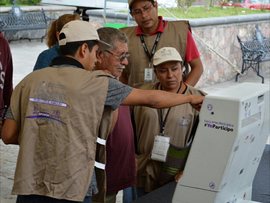 De igual manera, el IEEQ instaló dos urnas electrónicas como las que serán empleadas en el plebiscito, para explicar a los ciudadanos el funcionamiento de las mismas y socializar el nuevo mecanismo de votación.
