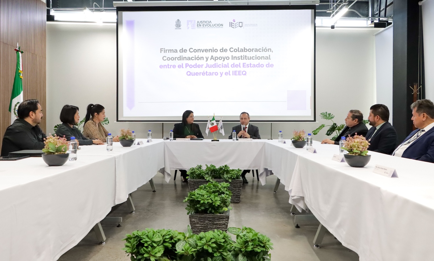 Titulares del Instituto Electoral del Estado de Querétaro (IEEQ) y del Poder Judicial del Estado de Querétaro firmaron un convenio de colaboración, coordinación y apoyo interinstitucional para fortalecer la educación cívica, la cultura democrática y la inclusión.
