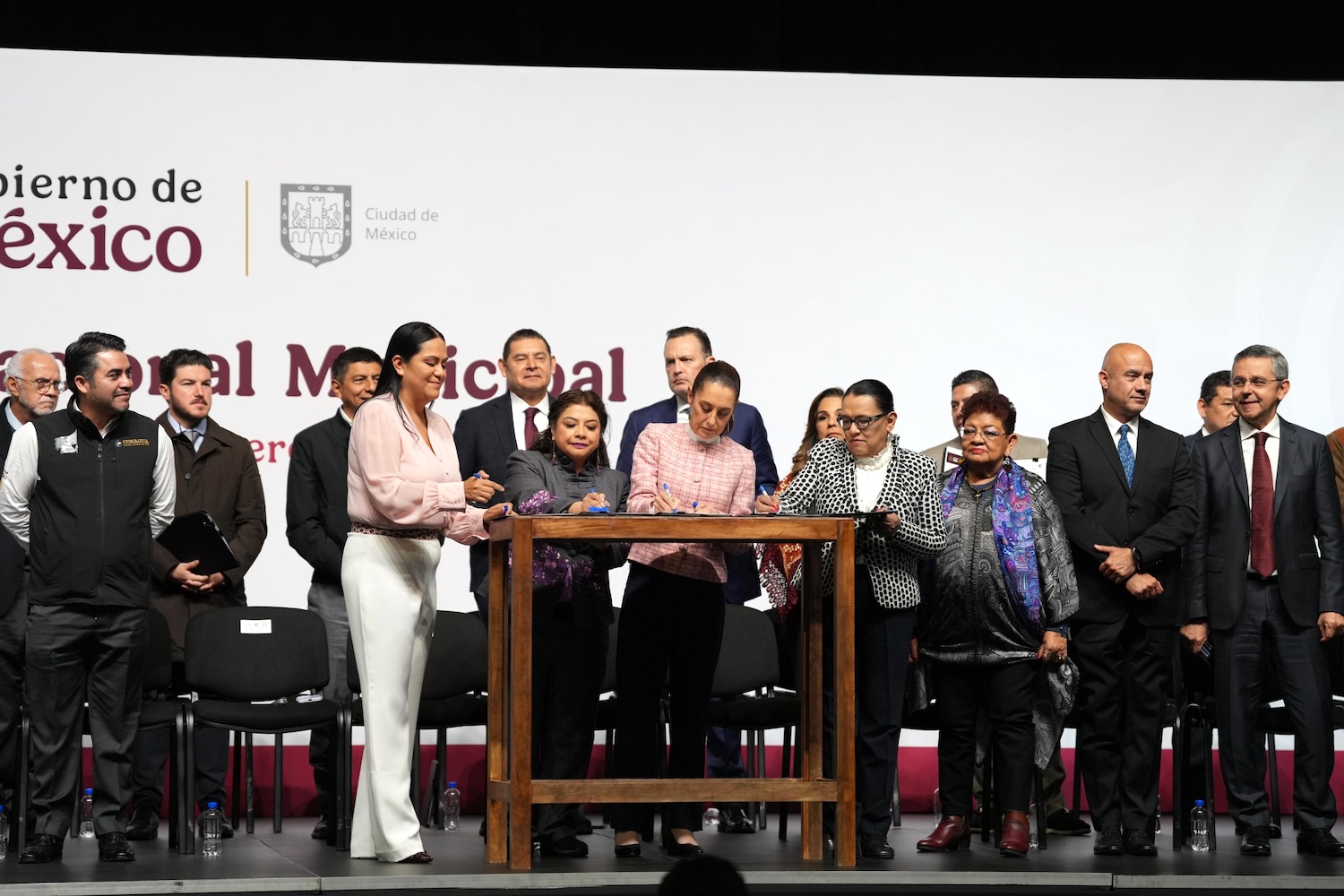 Con el objetivo de unir esfuerzos para la construcción de la paz, garantizar el acceso al agua potable y hacer valer los derechos constitucionales de los pueblos indígenas en todo el país, la presidenta de México, Claudia Sheinbaum Pardo encabezó el Encuentro Nacional Municipal, en el que participaron alcaldes y gobernadores de todo el país, así como de todos los partidos políticos.