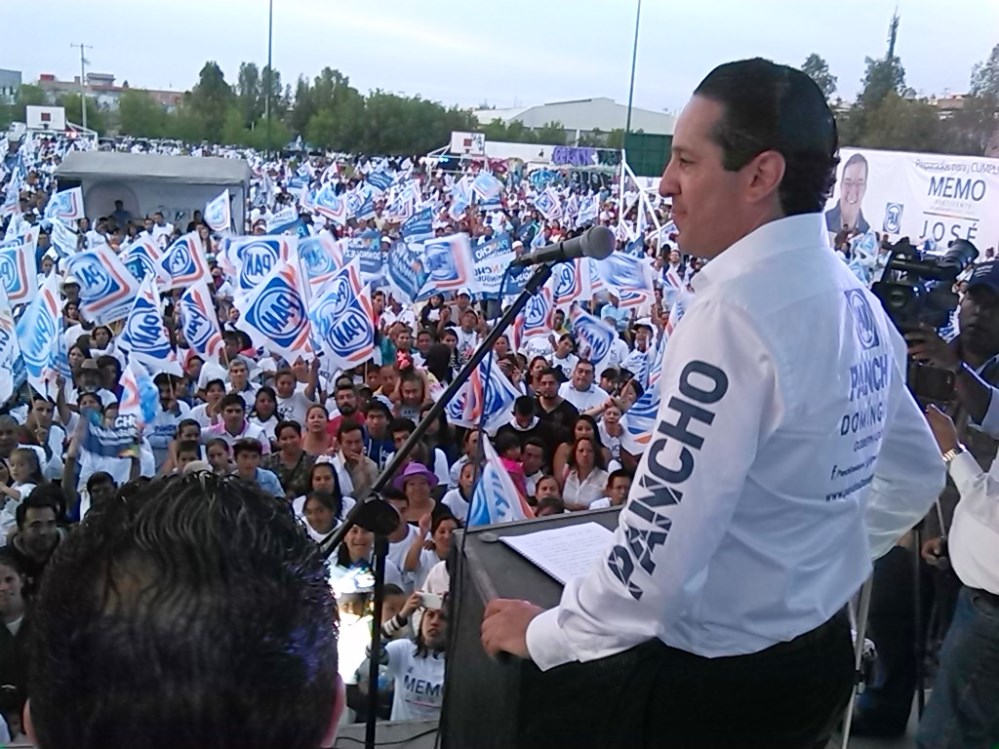 “¿Cómo está hoy San Juan del Río? Hay delito, opacidad y desigualdad. Les pido que me contraten para ser gobernador porque ustedes mandan, deciden y ordenan. Van a contratar a alguien cercano a esta tierra que les escucha y que les cumple, como lo hice siendo diputado y senador. Les tengo una buena noticia: en San Juan del Río la mediocridad llega a su fin. Concluye la ausencia de obra pública, la falta de sensibilidad. ¡Vamos a recuperar San Juan del Río para el PAN, para que San Juan del Río recupere su desarrollo, su obra pública, su seguridad y su bienestar! Lo anuncio desde hoy: ¡Vamos a desarrollar una nueva zona industrial aquí en San Juan!”, aseguró Pancho Domínguez.