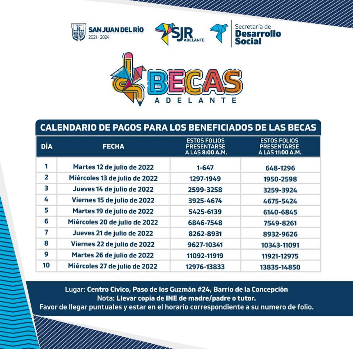 Finalmente, recordar que será a partir del martes 12 de julio cuando comience la entrega de apoyos en el Centro Cívico para seguir llevando ¡adelante la educación y a San Juan del Río!