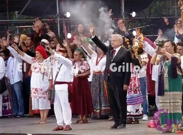 En el acto que se desarrolla la tarde de este sábado, López Obrador y su esposa Beatriz Gutiérrez Mueller recibieron diversos objetos “sagrados” de los pueblos indígenas, en medio de inciensos, flores y diversas plegarias.