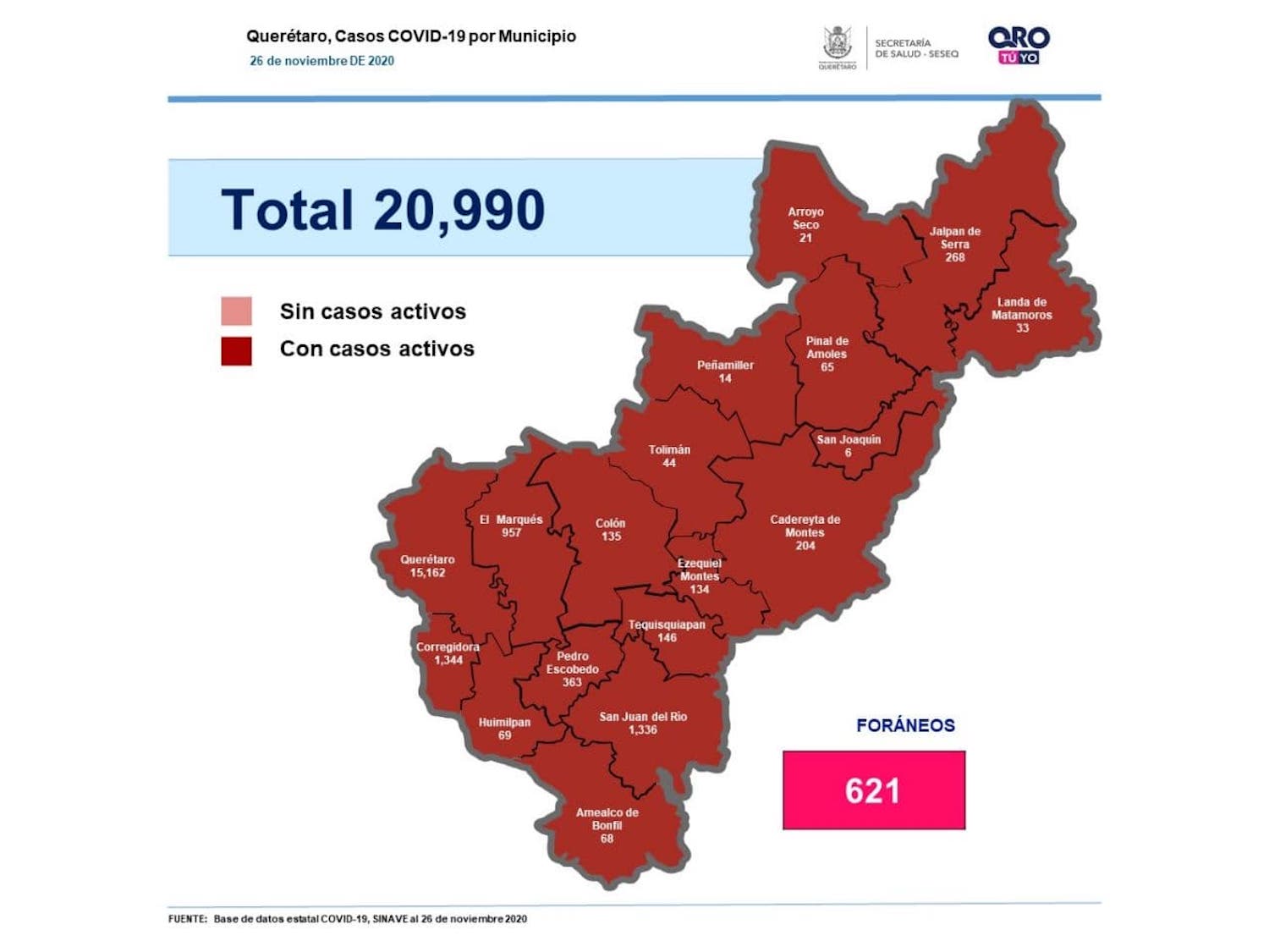 Querétaro, a punto de llegar a 21 mil contagios por #coronavirus; hoy suma 487