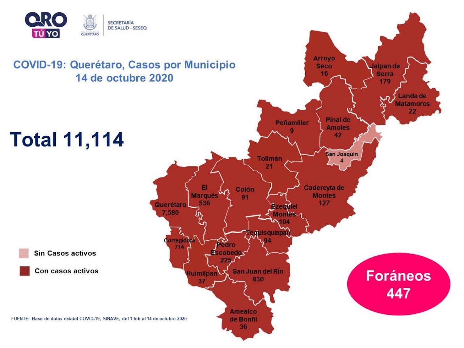 Querétaro, con 11 mil 114 contagios y mil 155 muertes por #coronavirus