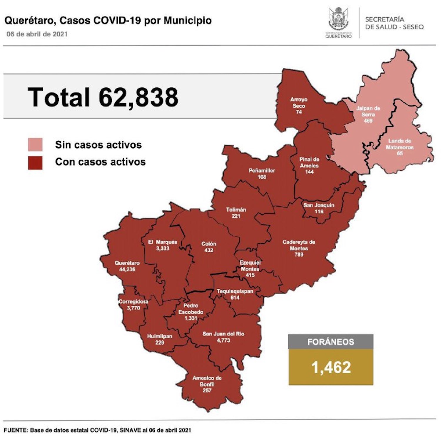 Se tiene un registro acumulado de 62 mil 838 casos de Covid-19; 51% son mujeres y 49% son hombres.