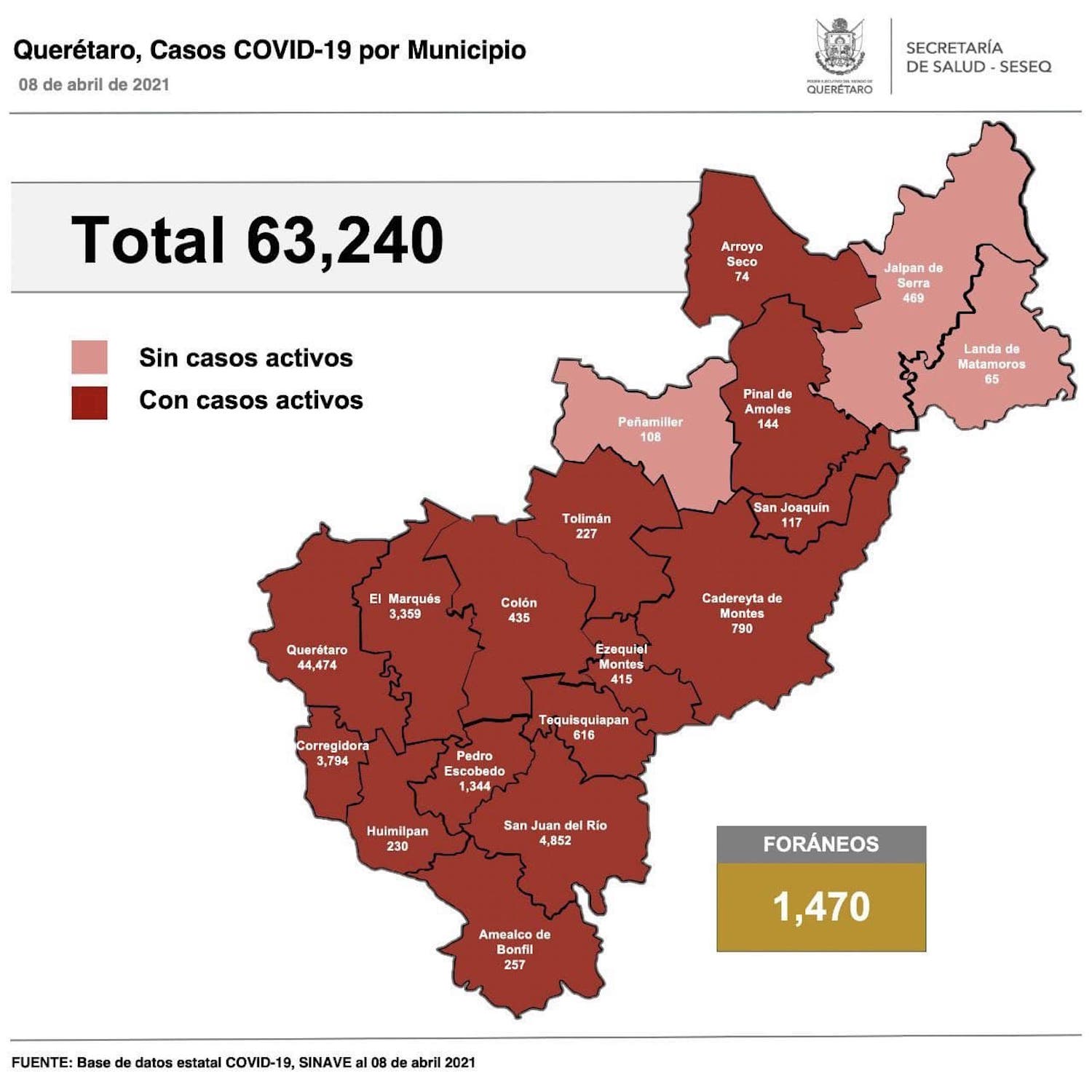 Se tiene un registro acumulado de 63 mil 240 casos de Covid-19; 51% son mujeres y 49% son hombres.
