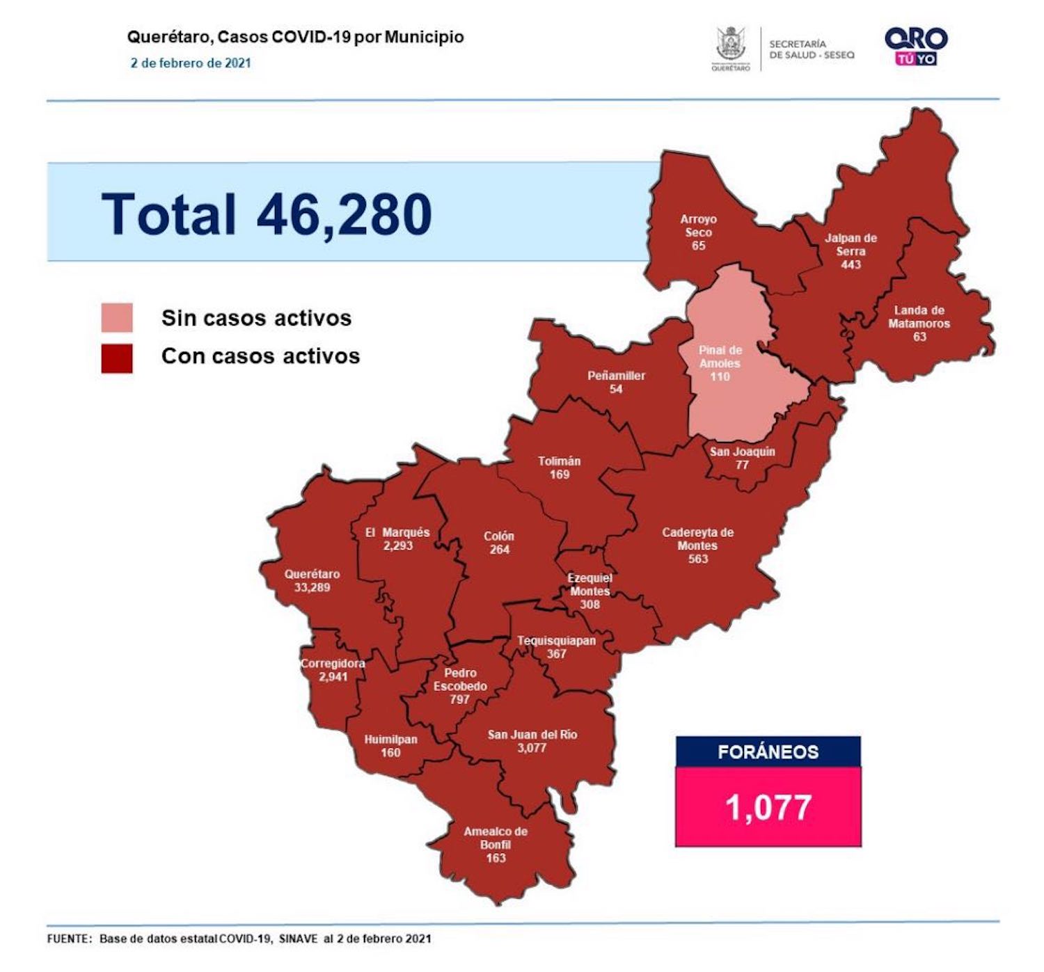 En la entidad se tiene un registro acumulado de 46 mil 280 casos de Covid-19; 50% son mujeres y 50% son hombres.