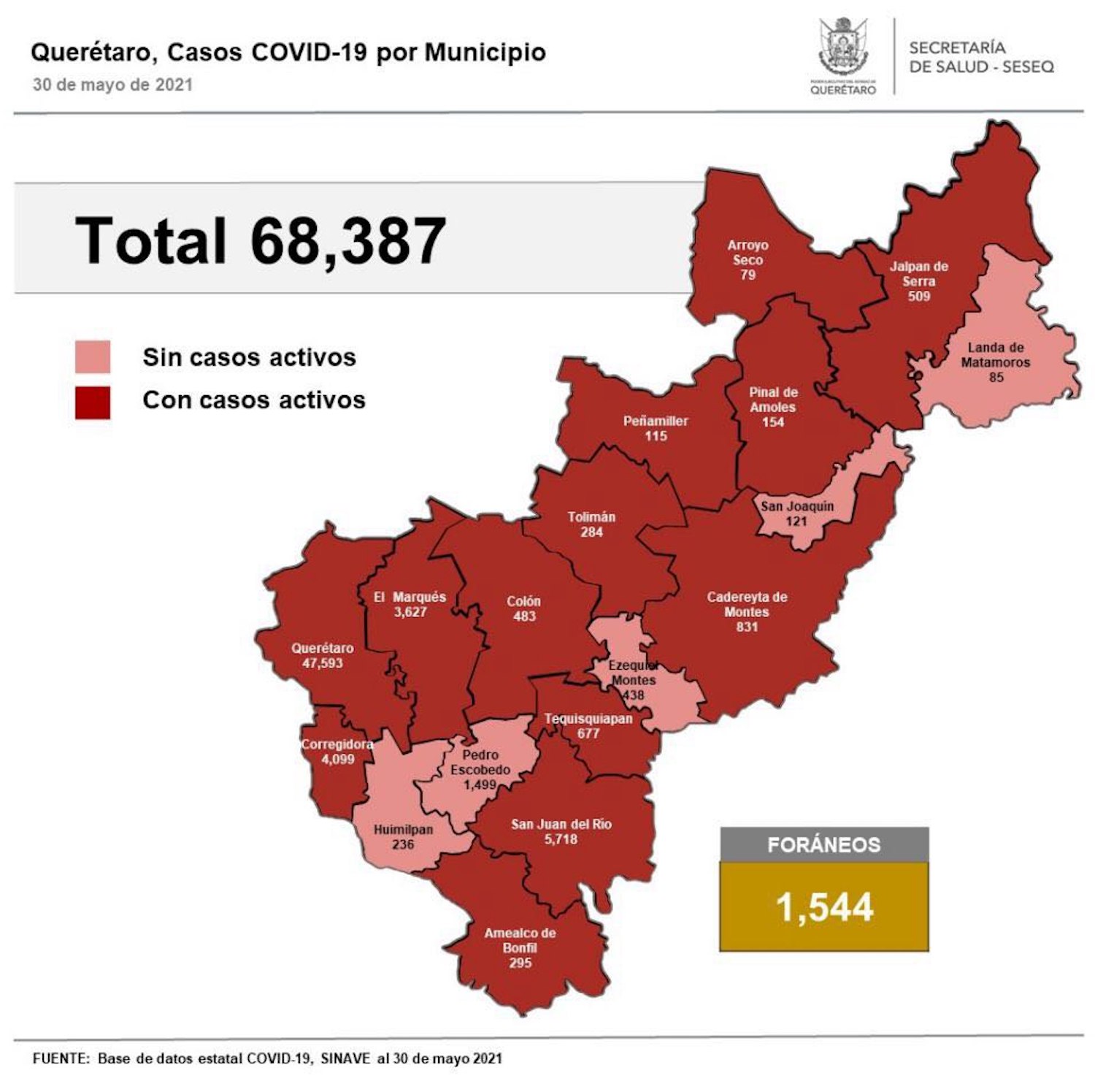 El registro acumulado es de 68 mil 387 casos de Covid-19; 51% son mujeres y 49% son hombres.