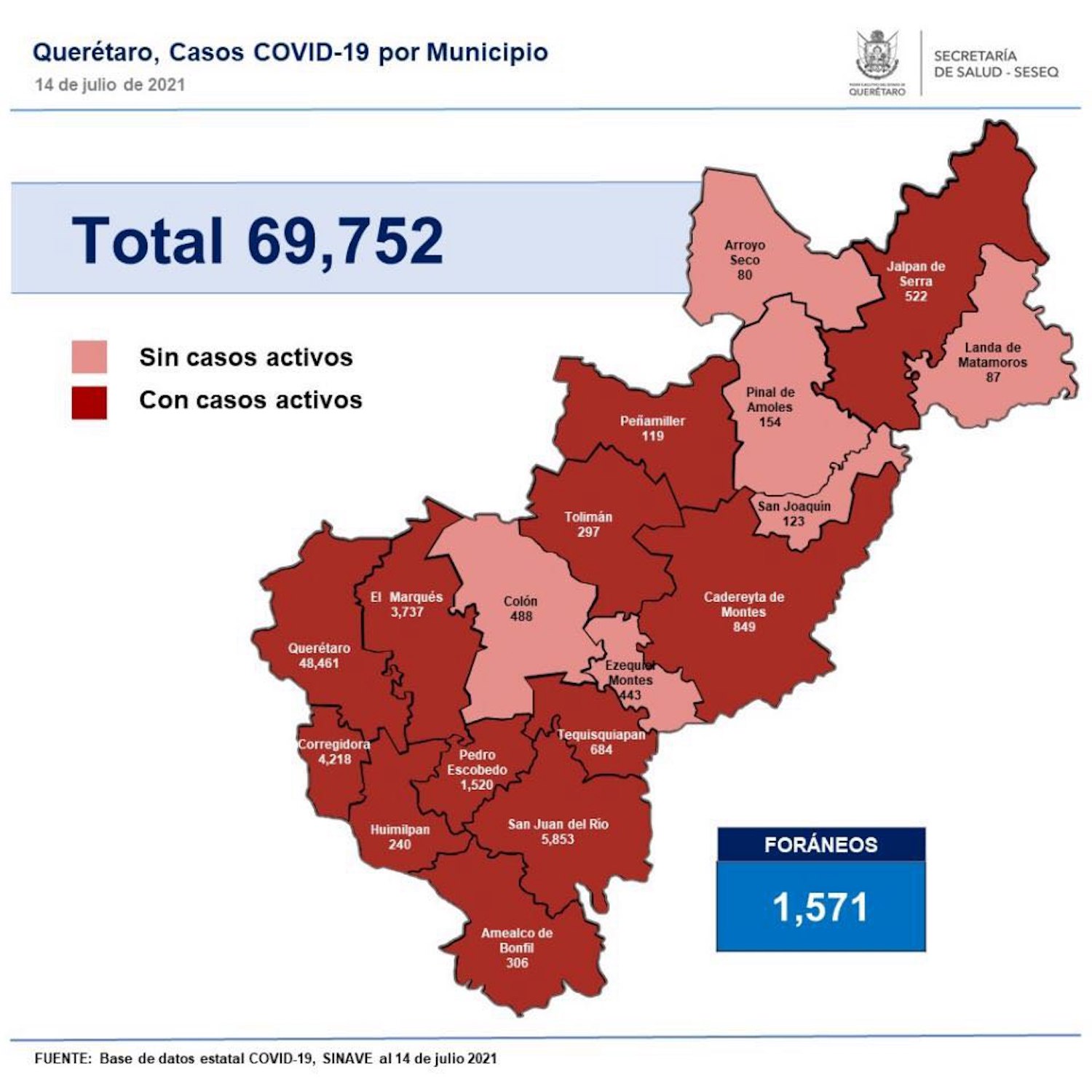 Con sintomatología leve, aislamiento y manejo en su domicilio hay 321 pacientes y 52 hospitalizados, 12 de los cuales se encuentran graves. Se han registrado cuatro mil 819 defunciones.