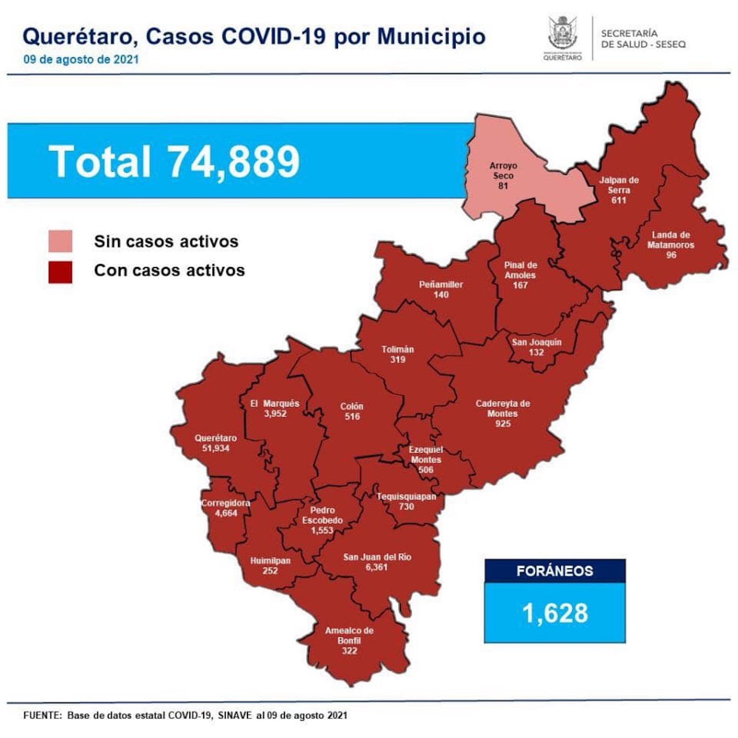 En Querétaro, una mujer de 43 años y seis hombres –de 45, 48, 51, 58, 66 y 70–, sin comorbilidad, así como un hombre de 50 y tres mujeres –de 63, 76 y 86 años–, con diversas comorbilidades, que se encontraban hospitalizados, fallecieron a causa de Covid-19.