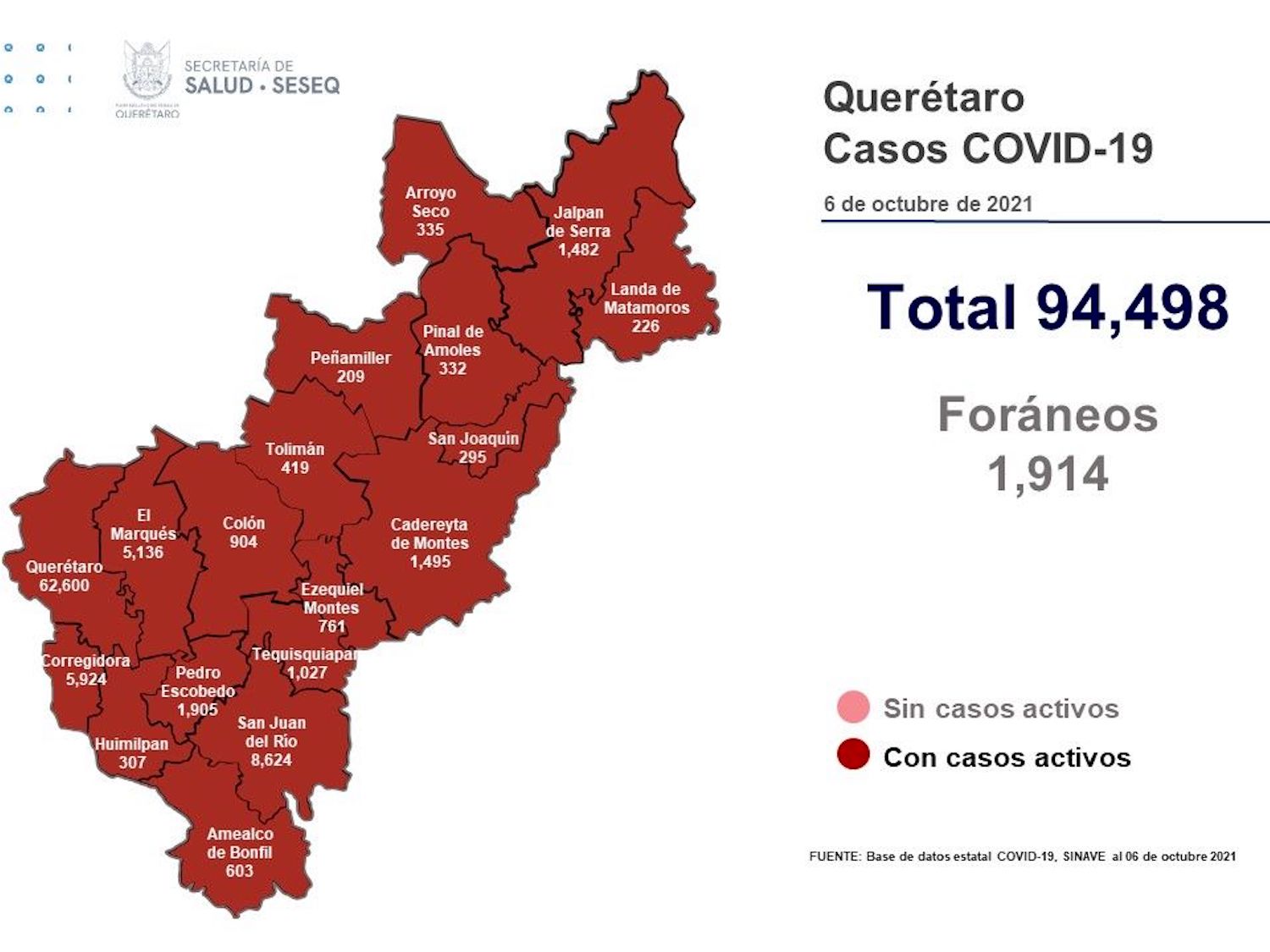 El registro acumulado es de 94 mil 498 casos; 51% son mujeres y 49% son hombres.