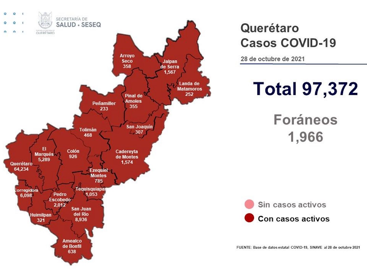 En Querétaro, un hombre de 63 años, sin comorbilidad, así como dos mujeres, una de 39 y una de 85 años, con diversas comorbilidades, que se encontraban hospitalizados, fallecieron a causa de Covid-19.