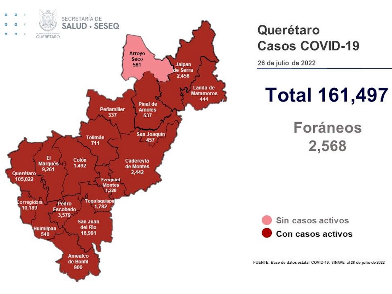 La Secretaría de Salud de Querétaro reportó este martes cero defunciones por Covid-19, aunque se sumaron 744 casos de la enfermedad; se trata de 413 mujeres y 331 hombres. El registro acumulado es de 161 mil 497 casos; 53% son mujeres y 47% son hombres.