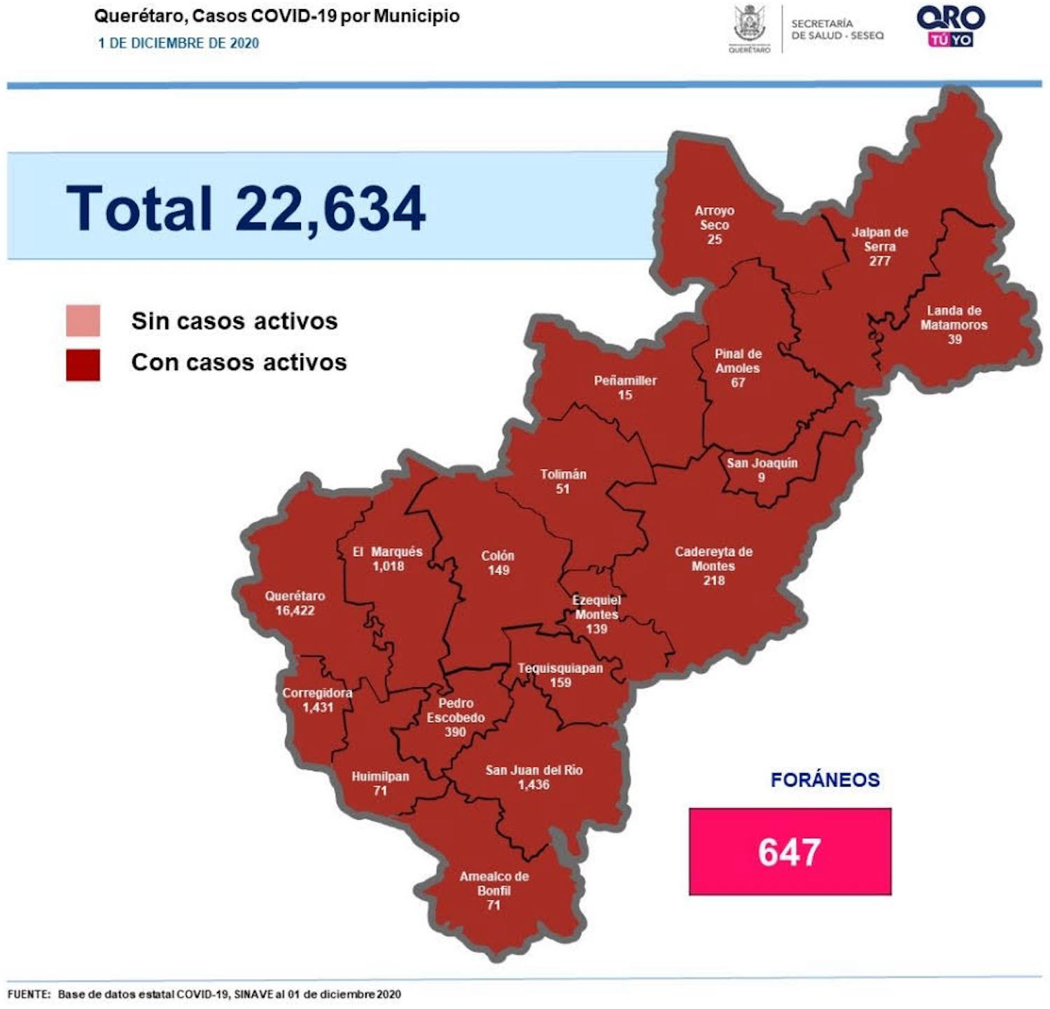 En la entidad se tiene un registro acumulado de 22 mil 634 casos de Covid-19; 49% son mujeres y 51% son hombres.