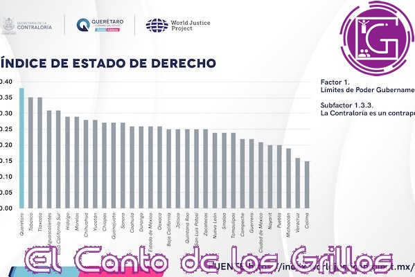 De acuerdo con el Índice del Estado de Derecho publicado por este organismo internacional, dentro de los resultados del sub eje “Las Contralorías como contrapeso al poder gubernamental”, se señala que las autoridades de la Contraloría actúan, investigan y sancionan a los servidores públicos cuando cometen actos de corrupción. Por ello, Querétaro destaca, por hacer lo correcto a diferencia de otras entidades.
