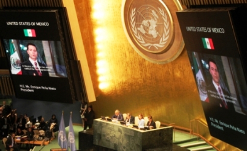Durante la ceremonia, presidida por el secretario general de Naciones Unidas (ONU), Ban Ki-moon, fueron transmitidos mensajes en video de parte de algunos jefes de Estado, entre los que destacó el del presidente de México, Enrique Peña Nieto.