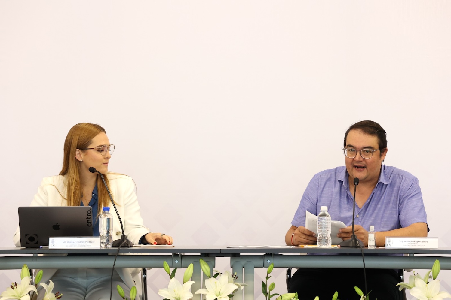 El presidente de la Junta de Coordinación Política, diputado Guillermo Vega Guerrero, dio la bienvenida a la secretaria de la Juventud, Virginia Hernández Vázquez, a la comparecencia que, como parte de la Glosa del Tercer Informe del Poder Ejecutivo, se lleva a cabo ante diputados de la LX Legislatura.