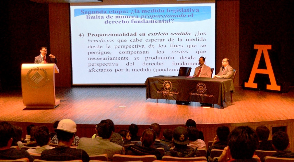 De igual manera, el Doctor en Derecho dijo que para determinar que una norma es anticonstitucional se debe realizar un análisis de la contradicción e improcedencia de la misma, a través de cuatro pruebas: finalidad, idoneidad, necesidad y proporcionalidad.
