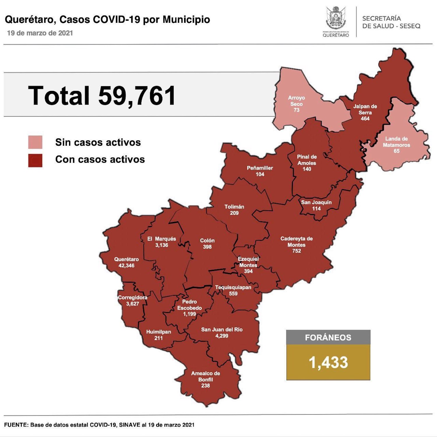 En la entidad se tiene un registro acumulado de 59 mil 761 casos de Covid-19; 51% son mujeres y 49% son hombres.