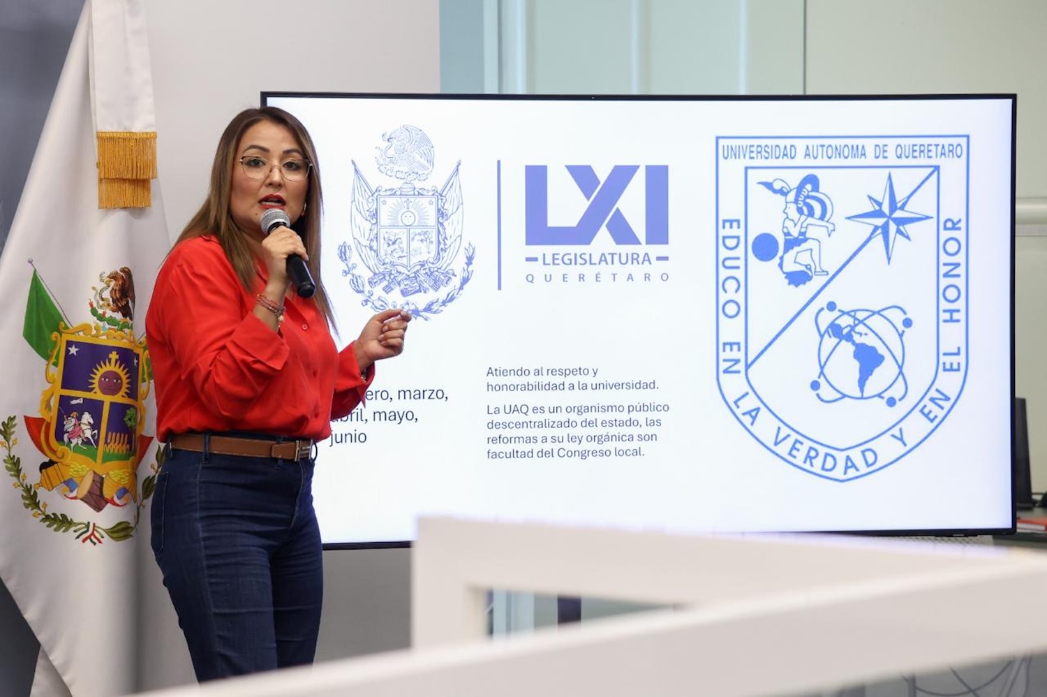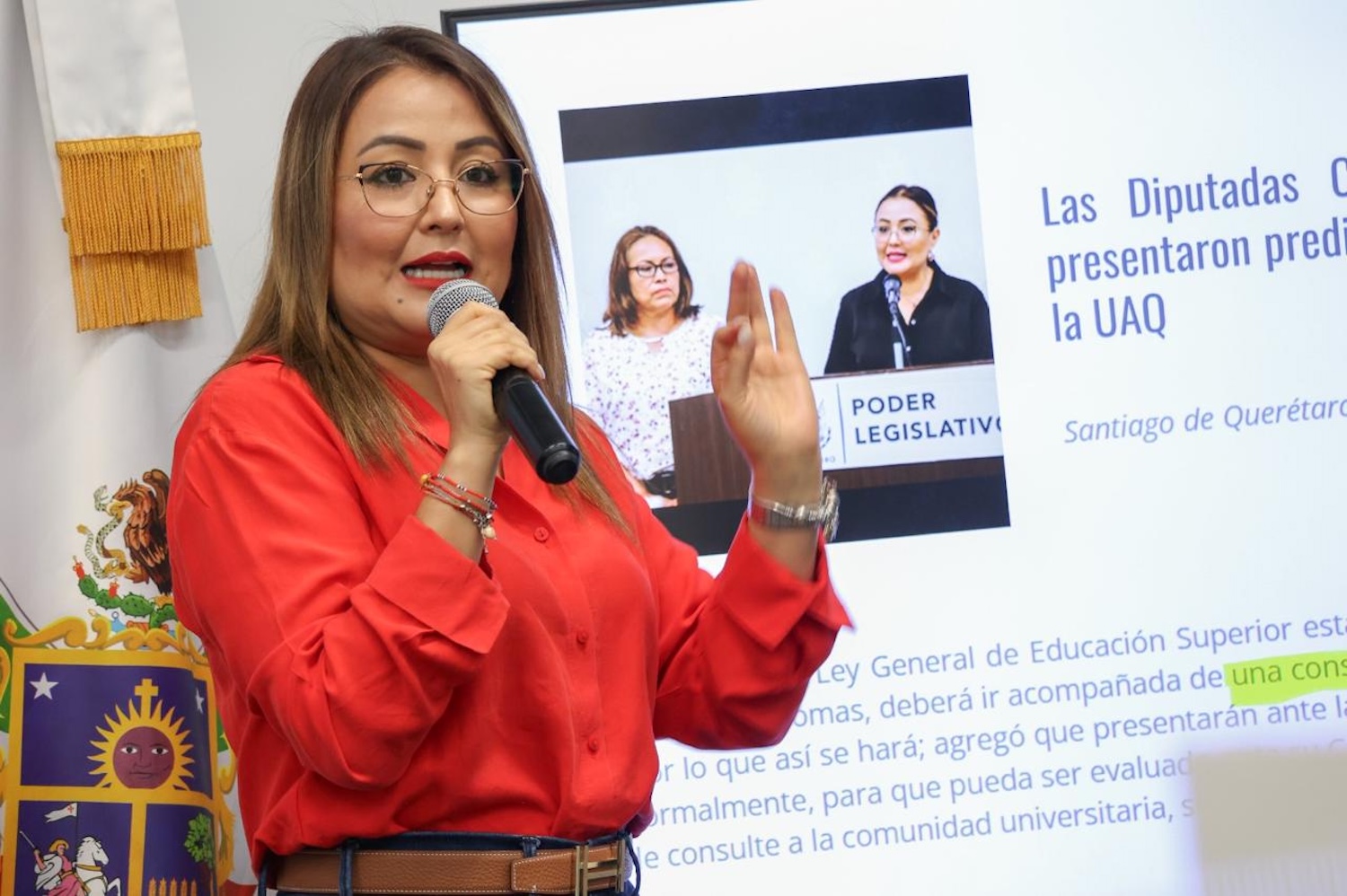 La diputada Claudia Díaz Gayou, como coordinadora de la Fracción Legislativa del PT y como autora de iniciativas de ley ingresadas a la Oficialía de Partes de la Legislatura en materia de igualdad sustantiva, dio a conocer en rueda de prensa su postura al respecto, particularmente en la propuesta relativa a la Universidad Autónoma de Querétaro (UAQ).