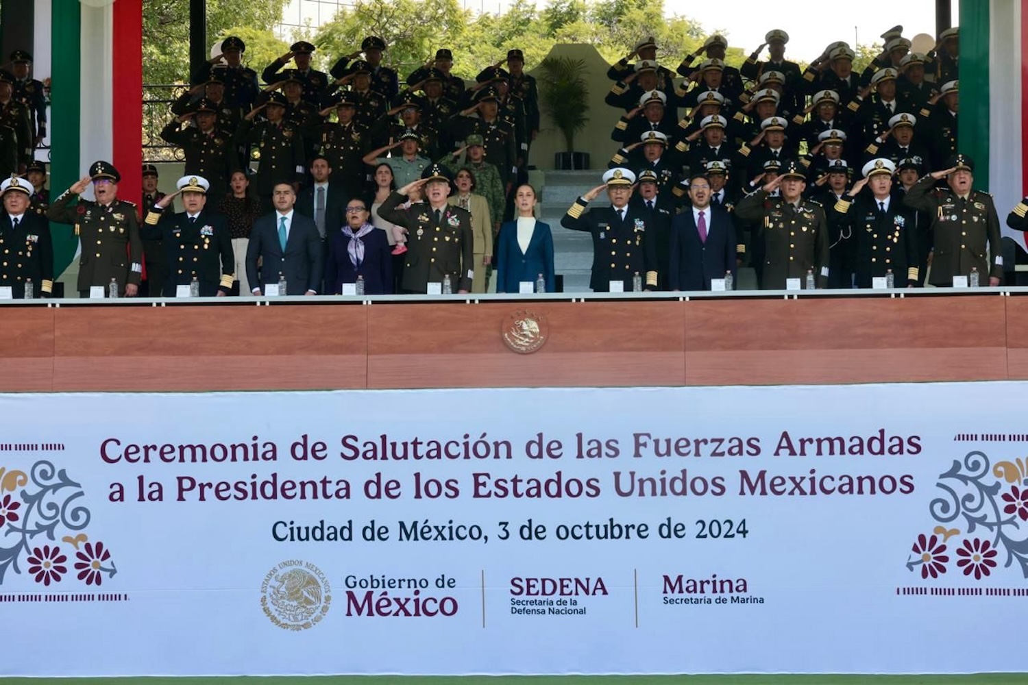 “Hace sólo unos días, dos días, juré como presidenta Constitucional de los Estados Unidos Mexicanos. Es la primera vez que México tiene una mujer presidenta y, por tanto, una comandanta suprema de las Fuerzas Armadas. Ello también refleja la profunda transformación que está viviendo nuestro país”, manifestó.