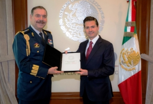 El presidente Enrique Peña Nieto recibió este martes en la residencia oficial de Los Pinos el Cuarto Informe de Actividades del jefe del Estado Mayor Presidencial (EMP), Roberto Miranda Moreno.
