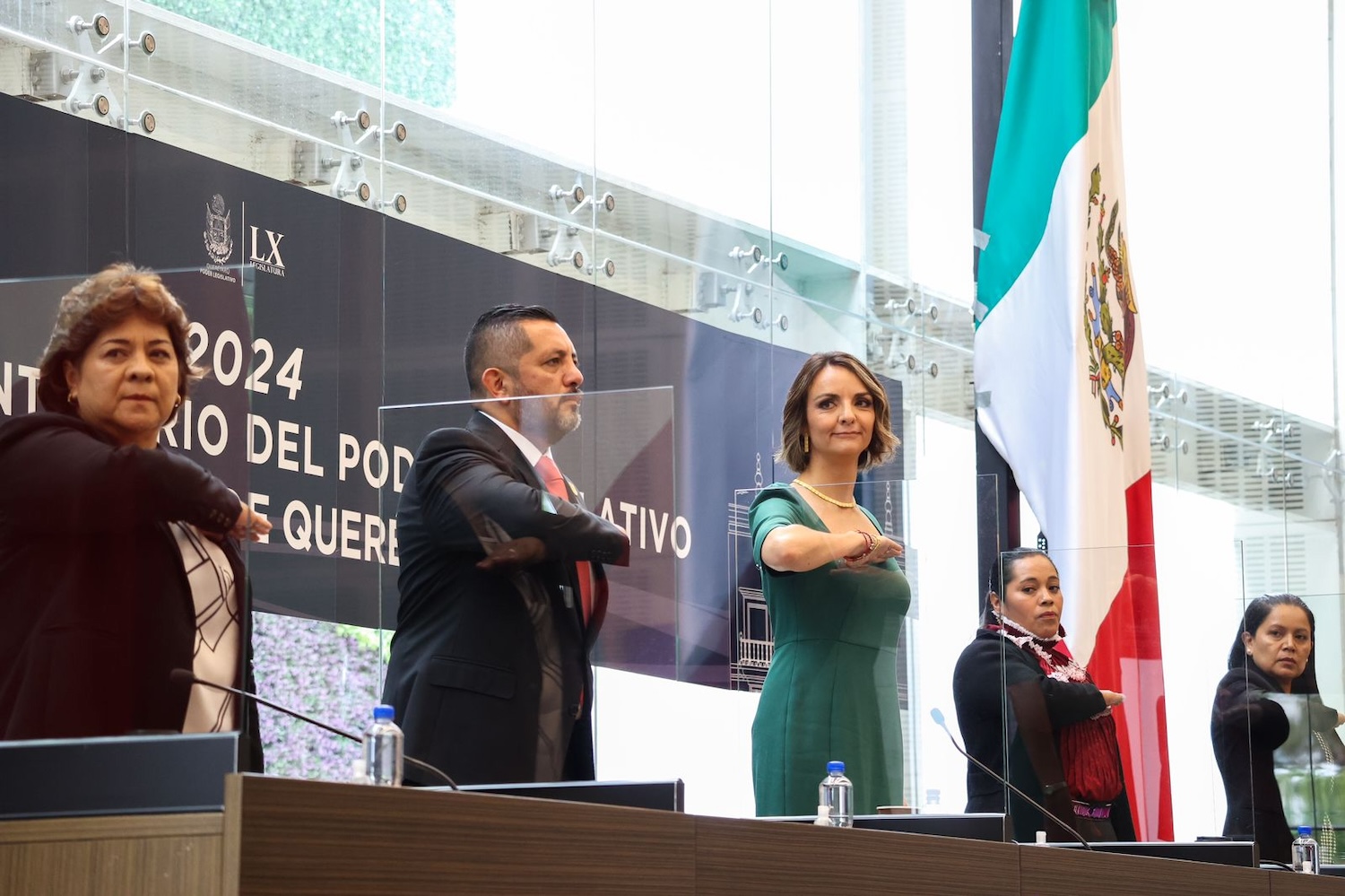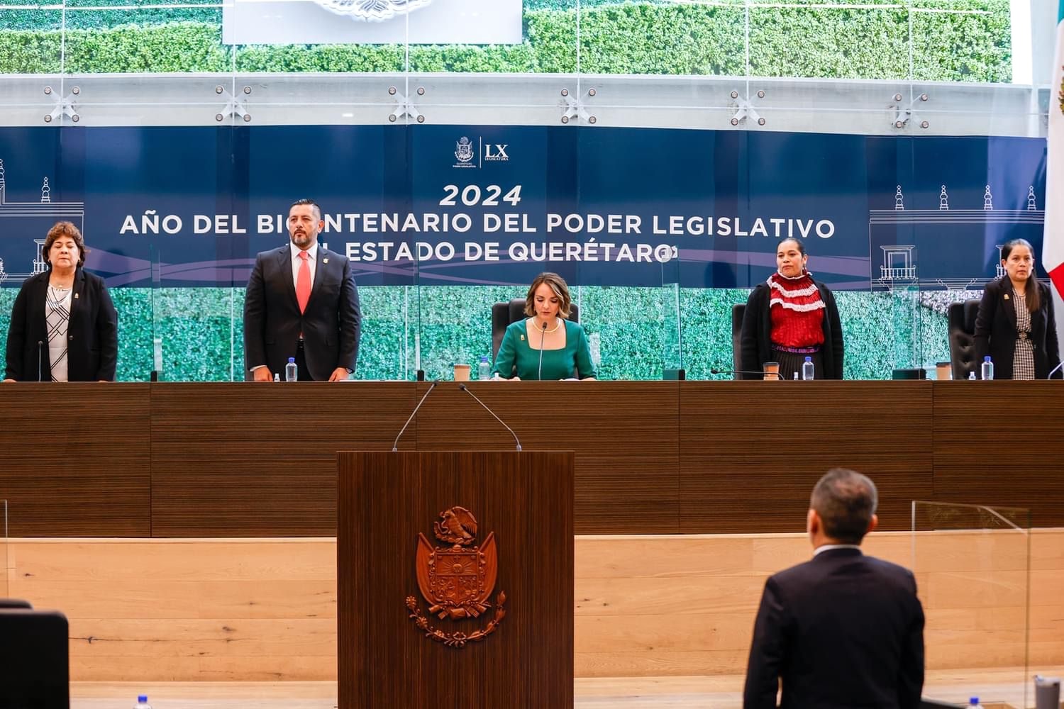 En Sesión Solemne de Pleno de la LX Legislatura, la presidenta de la Mesa Directiva, diputada Ana Paola López Birlain, recibió el Informe escrito 2023-2024 del Poder Ejecutivo del estado, correspondiente al tercer año de ejercicio constitucional, de manos del secretario de Gobierno, Carlos Alberto Alcaraz Gutiérrez, en representación del gobernador de Querétaro, Mauricio Kuri González.