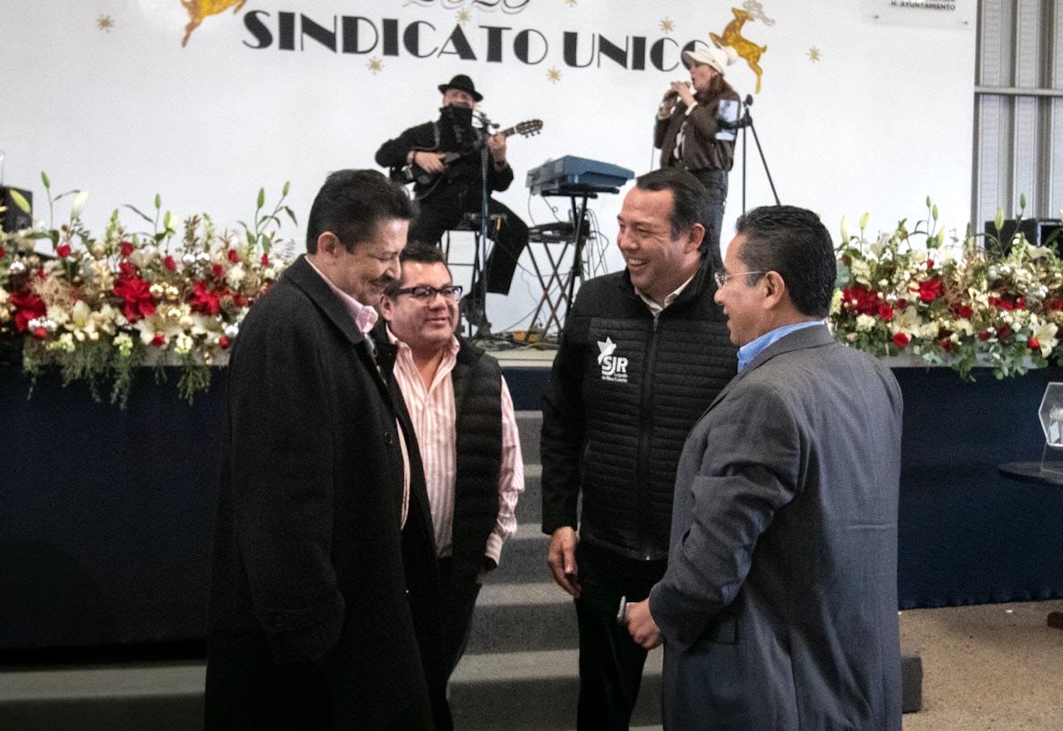El presidente municipal, Roberto Cabrera Valencia, asistió como invitado al festejo de Fin de Año del Sindicato Único de Trabajadores al Servicio del Municipio de San Juan del Río (SUTSMSJR), organización sindical encabezada por Gregorio López González.