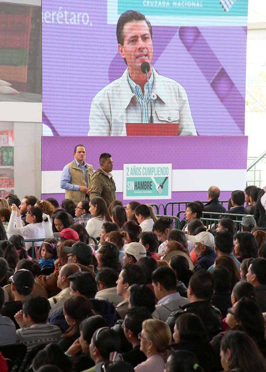 El Gobernador del Estado, José Calzada Rovirosa y el Presidente de México, Enrique Peña Nieto, encabezaron la entrega de apoyos de la Cruzada Nacional Contra el Hambre, con la que se fortalece la política social de la administración estatal, para beneficiar a las familias que más lo necesitan.