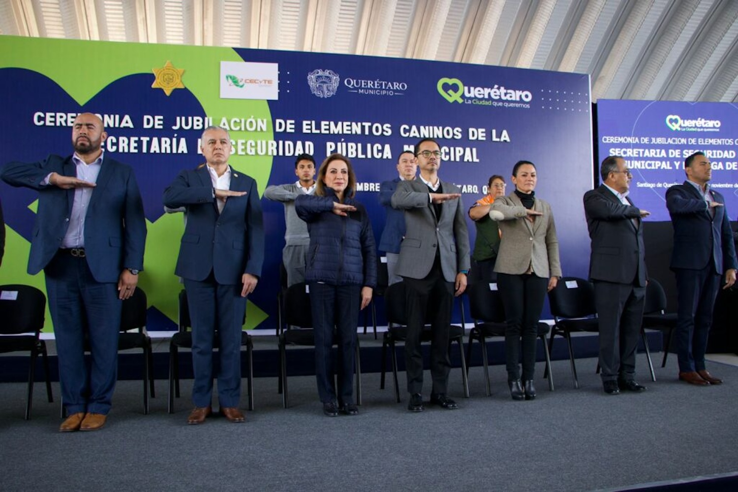 Esta mañana en las instalaciones del Cecyteq plantel 9, ubicado en la comunidad de Montenegro, se llevó a cabo la ceremonia de jubilación de cinco elementos caninos pertenecientes a la unidad táctica K-9 de la Secretaría de Seguridad Pública Municipal de Querétaro (SSPMQ), acto encabezado por el secretario Juan Luis Ferrusca, en representación del alcalde Luis Nava.