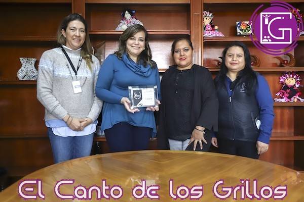 La directora de Vinculación de la Universidad Autónoma de Querétaro (UAQ), Paulina Becerril Luna y la coordinadora de Proyectos Formativos Comunitarios de la misma Institución, Mayra Diana Briseño Martínez, entregaron a la rectora de esta casa de estudios, Silvia Amaya Llano, una placa de reconocimiento con motivo del 15º Aniversario del programa de servicio social universitario de mentoría “UAQ-Peraj”.