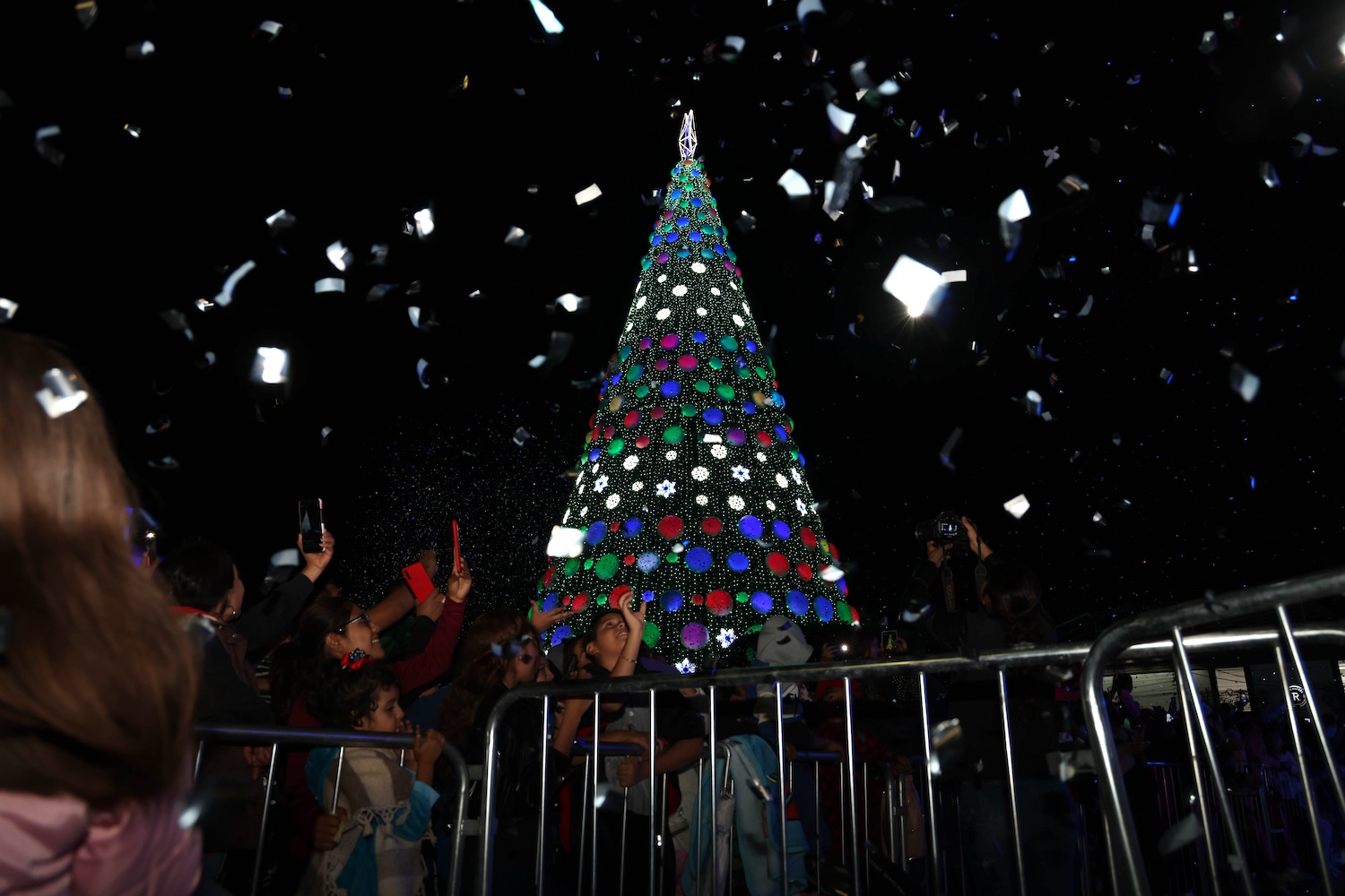 Como primera atracción, las autoridades estatales y municipales presenciaron un espectáculo de performance a cargo de personajes de películas infantiles, que dio paso al encendido del pino monumental de 25 metros de altura, que cuenta con una estrella tridimensional de 4.5 metros y 82 mil 500 focos de luces led, a su alrededor se montó una gran villa navideña.