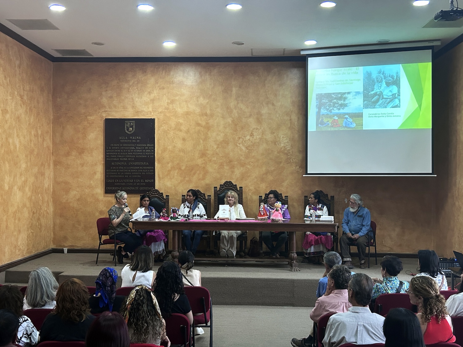 El evento que tomó lugar en el Aula Magna de la FFi, fue presidido por la titular de la Jefatura de Investigación y Posgrado de dicha Unidad Académica, Adriana Terven; acompañada por el exdirector del Instituto Intercultural Ñöñho de San Ildefonso Tultepec, Mario Monroy, y por las representantes de las poblaciones mencionadas: María Lucia Pascual, Diana Pérez Soriano, Neri de Jesús, y Ma. Isabel Pascual García, quienes compartieron sus lecturas y experiencias con el público asistente.