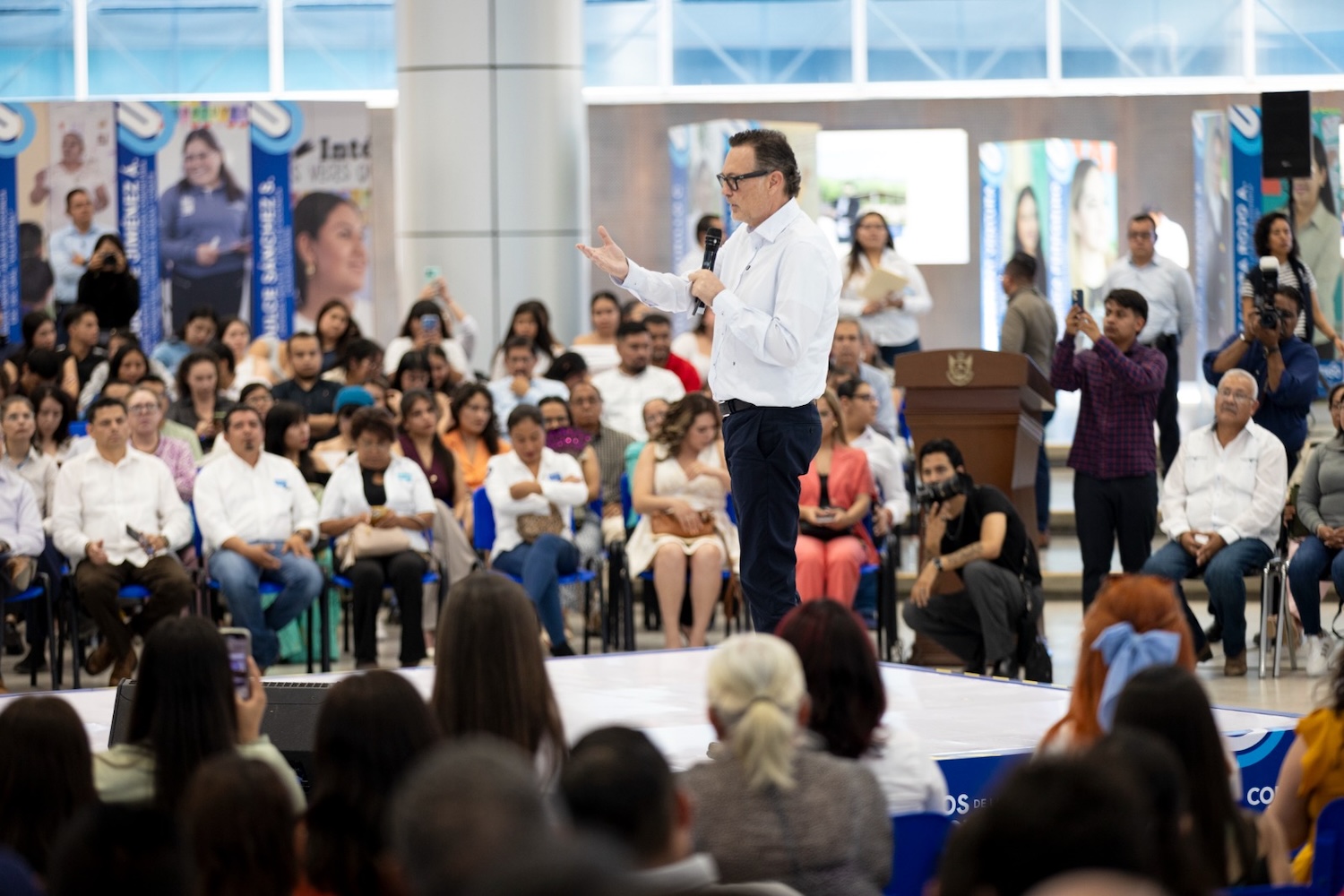 Mediante un recorrido por el Ágora del Centro Educativo y Cultural Manuel Gómez Morín, Kuri González observó las imágenes que integran la galería y reflejan los rostros de los maestros que, desde la educación inicial hasta el posgrado, forman a las generaciones que día a día construyen el presente y futuro del estado; acción que pone de manifiesto el firme y constante respaldo de su gestión, apostándole a la educación como la mejor herramienta para salir adelante.