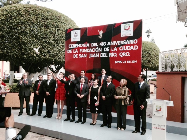 “Hoy no sólo estamos de fiesta, estamos ante el día más importante para nuestra ciudad; donde la historia, modernidad, identidad y arraigo por nuestras raíces se conjugan para unirnos y conmemorar el acervo que nos han legado nuestros ancestros”, expresó el alcalde Fabián Pineda Morales, durante la ceremonia conmemorativa al 483 aniversario de la fundación de San Juan del Río.