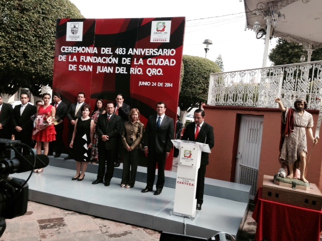 “Hoy no sólo estamos de fiesta, estamos ante el día más importante para nuestra ciudad; donde la historia, modernidad, identidad y arraigo por nuestras raíces se conjugan para unirnos y conmemorar el acervo que nos han legado nuestros ancestros”, expresó el alcalde Fabián Pineda Morales, durante la ceremonia conmemorativa al 483 aniversario de la fundación de San Juan del Río.