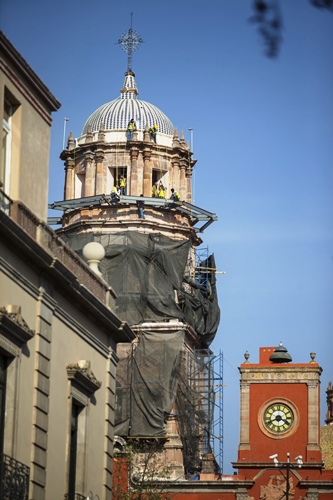 En este segundo semestre del año, la SDUOP también trabajó en la restauración y rehabilitación de las cubiertas, la torre del campanario y las cúpulas del Templo y convento de Nuestra Señora de El Carmen, inmueble que no se había intervenido desde hace 20 años y que presentaba deterioro en algunas de sus áreas.