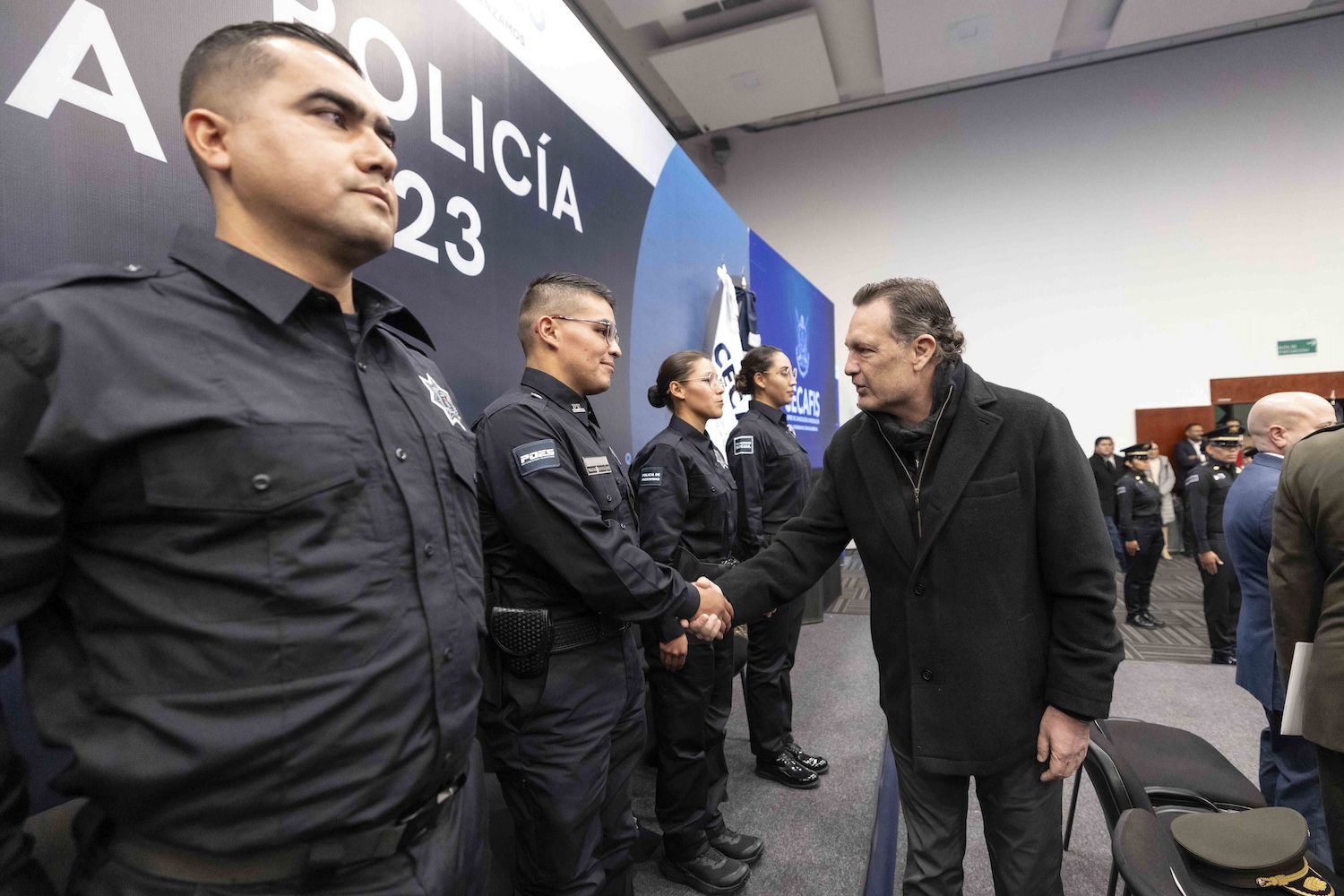 Detalló que esta estrategia es responsabilidad del Centro de Capacitación, Formación e Investigación para la Seguridad, y es de reconocer que en este 2023, la meta de 100 nuevos policías se haya superado en más del doble, con 110 nuevos elementos más. Agregó que lo mismo ocurrió el año pasado, cuando egresaron de las academias 242 agentes, para hacer un total de 472 nuevos policías.