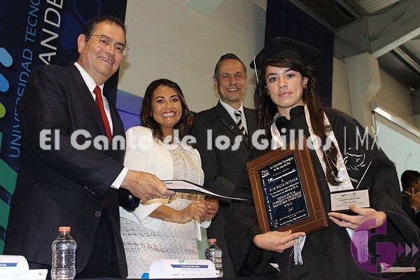 A nombre de los egresados, la TSU en Tecnologías de la Información y Comunicación, Patricia Ruíz Mejía, mejor promedio de la generación, expresó su agradecimiento a los padres de familia y en especial a los profesores: “A ustedes compañeros les pido que pongamos en alto el nombre de nuestra Universidad, resaltando los valores que nos han inculcado, y demostrando con nuestro desempeño profesional que somos capaces de cambiar al mundo para bien”.