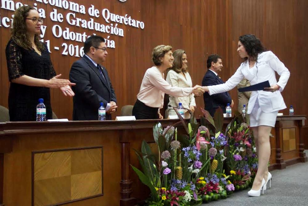 La Universidad Autónoma de Querétaro (UAQ) -a través de la Facultad de Medicina- entregó constancias de estudios a los 92 alumnos que culminaron su formación en las licenciaturas en Medicina General y Odontología de la generación 2011-2016; así como a los graduados de Técnico Superior Universitario (TSU) en Prótesis Dental, generación 2014-2016.