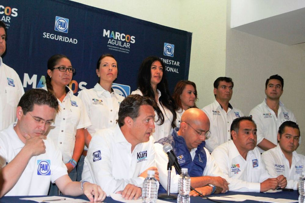 Durante la conferencia de prensa estuvieron Marcos Aguilar, candidato del PAN a la presidencia municipal de Querétaro; Lupe García, aspirante del PAN a la presidencia municipal de El Marqués; José Luis Báez Guerrero, presidente estatal del partido y Alejandro Cano Alcalá, dirigente municipal.