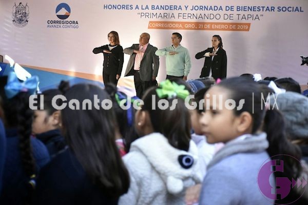 El presidente municipal de Corregidora, Roberto Sosa Pichardo, encabezó la ceremonia de Honores a la Bandera en la escuela primaria “Fernando de Tapia”, donde se comprometió a trabajar en equipo con autoridades escolares y padres de familia para mejorar sus instalaciones.