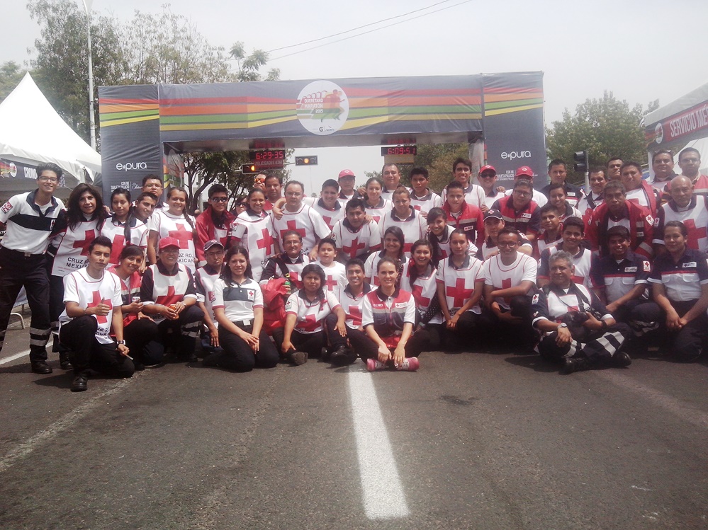 Cruz Roja Mexicana Querétaro, Institución humanitaria al servicio de la sociedad, cubrió el Maratón Querétaro 2015, que se realiza año con año recibiendo a más de 20 mil corredores nacionales e internacionales.