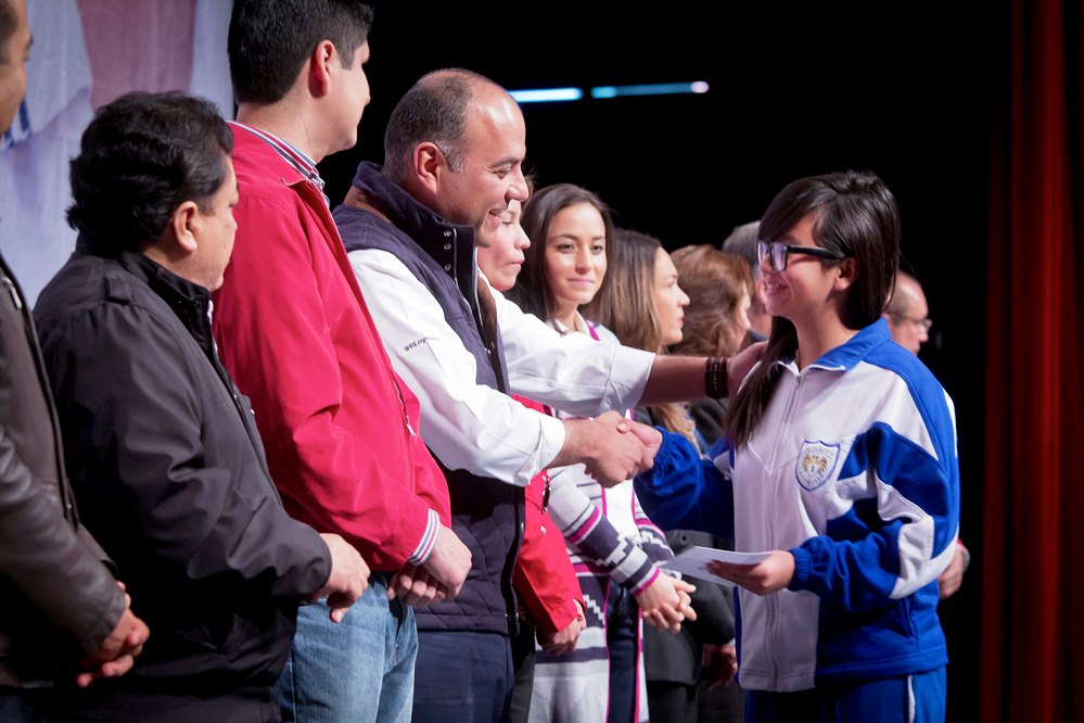 Al agradecer la presencia de autoridades municipales, estatales y educativas, así como del acompañamiento de la niña Estrellita, Roberto Loyola entregó los incentivos económicos a los estudiantes, a quienes exhortó a seguirse preparando y a luchar por sus sueños, porque –agregó- son ellos quienes hacen grande a Querétaro.