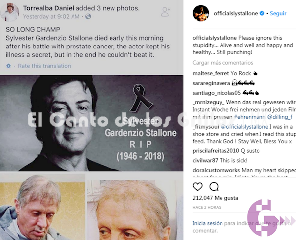 El actor que dio vida al personaje de ‘Rocky’ durante años se ha visto obligado a desmentir estos rumores a través de su cuenta oficial de Instagram. “Por favor, ignoren esta estupidez. Con vida, bien, feliz y saludable. ¡Todavía golpeando!”, escribió junto al post que se había viralizado, en el que aparecía un texto indicando que “había fallecido a causa de un cáncer de próstata que había mantenido en secreto”.