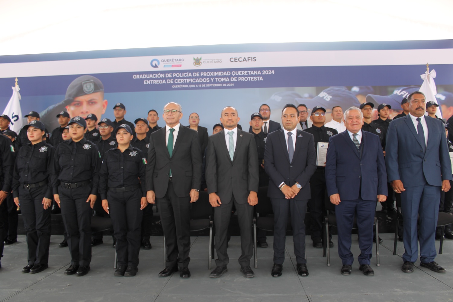 Con la graduación de este grupo de nuevos policías, por tercer año consecutivo se cumple la meta establecida en el Programa Estatal de Seguridad de entregar a la sociedad queretana anualmente, al menos, 100 policías certificados y capacitados en los más altos estándares nacionales e internacionales, lo que demuestra que el Cecafis cuenta con bases académico administrativas sólidas para lograr “Más y mejores policías”.