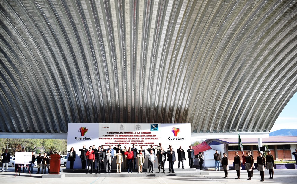 La ceremonia cívica, se llevó a cabo en la escuela Secundaria Técnica. No. 38 "Quetzalatl" en la comunidad de Montenegro, dentro de la delegación Santa Rosa. Jáuregui, en donde el alcalde hizo entrega de un arcotecho, con inversión de poco más de un millón de pesos en beneficio de 600 estudiantes de dicha institución educativa.