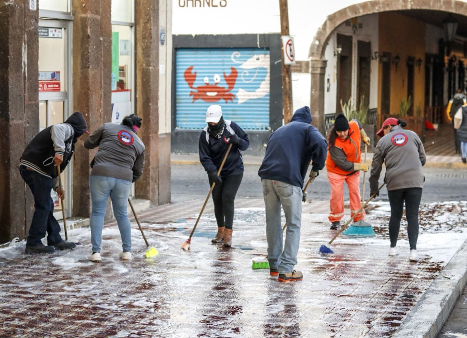 Con el objetivo de mejorar la imagen de los espacios públicos del municipio de San Juan del Río, este lunes se realizaron labores de barrido y lavado en el Jardín de la Familia, trabajos que fueron supervisados por el presidente municipal, Roberto Cabrera Valencia, en equipo con el secretario de Servicios Públicos Municipales, Ernesto Mora Rico.