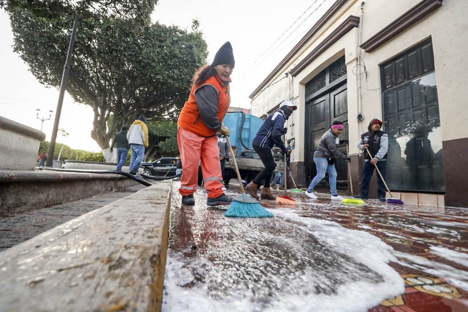 En el espacio público se llevaron a cabo acciones de barrido; asimismo, se pusieron en marcha labores de limpieza y lavado con jabón, para lo cual se vertió agua a través de pipas. Estas actividades –donde participaron alrededor de 15 personas pertenecientes al Departamento de Aseo Público–, se realizaron en el segundo patio del Jardín de la Familia.