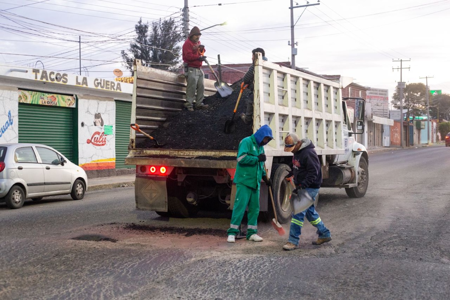 Desde antes de las 6:30 horas de este martes, alrededor de 13 personas –pertenecientes al Departamento de Aseo Público–, llevaron a cabo acciones de barrido fino, con la intención de eliminar tierra acumulada y la recolección de basura en las inmediaciones del Bulevar Pedregoso, así como también trabajos de bacheo en avenida Universidad.